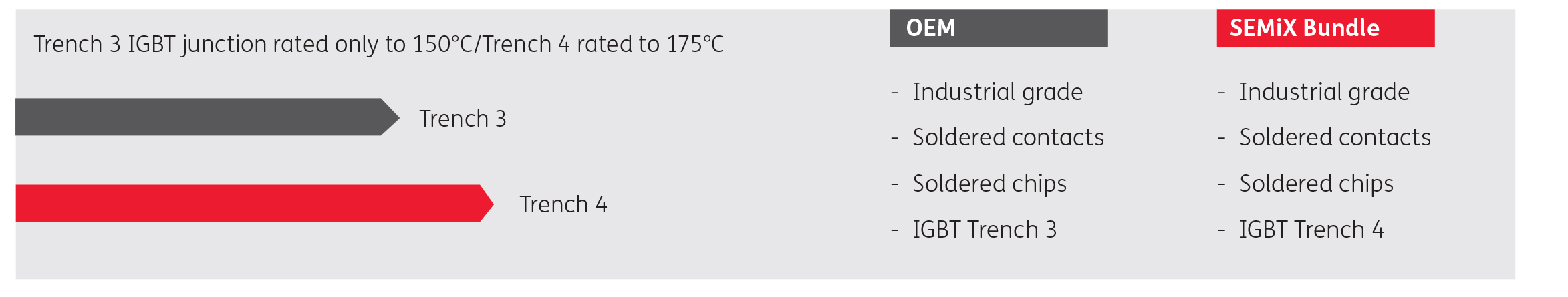 Trench 3 (OEM) vs Trench 4 (SEMiX® Bundle) IGBT maximum temperature